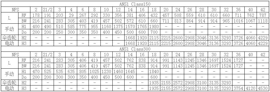 美標(biāo)鉻鉬鋼閘閥ANS1 Class150~ANS1 Class300主要外形尺寸: