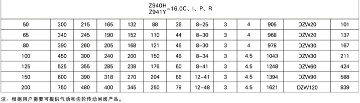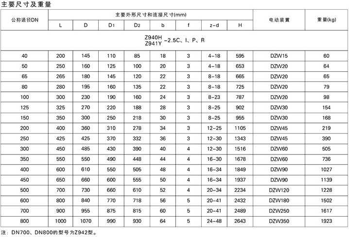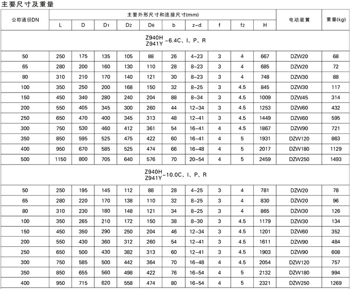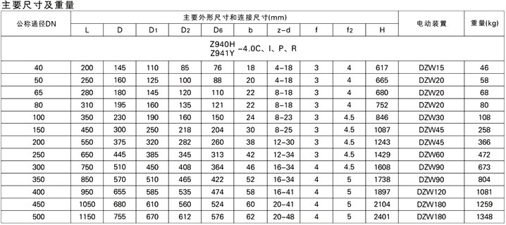 Z941Y電動高壓法蘭閘閥的主要尺寸及重量: