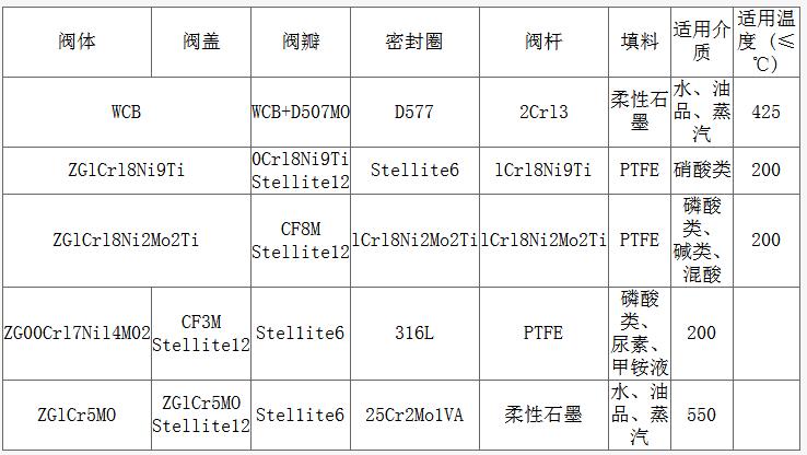4、閥體材料品種齊全,填料、墊片可根據(jù)實際工況或用戶要求合理選配,能適用于各種壓力、溫度及介質工況。