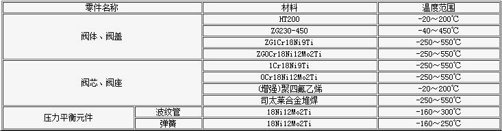 自力式溫度調節閥主要零件及推薦使用溫度范圍