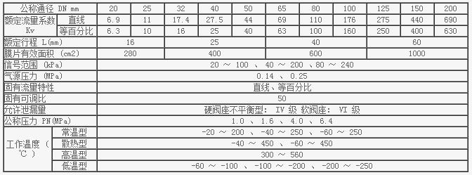 氣動調節閥主要技術參數