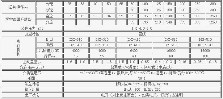 電動(dòng)三通合流-分流調(diào)節(jié)閥主要技術(shù)參數(shù)