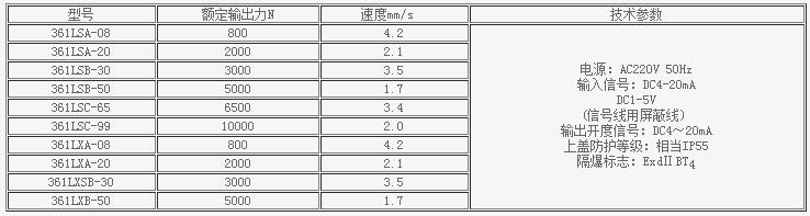 執(zhí)行機構(gòu)主要技術(shù)參數(shù)