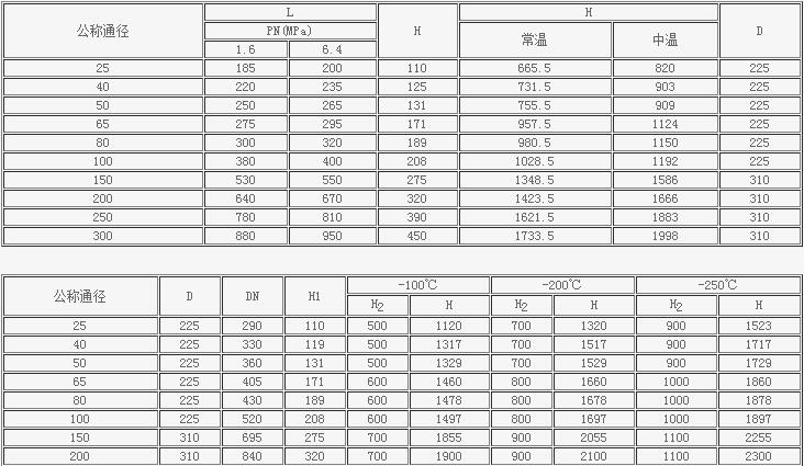 外形尺寸:ZDLP電動常、中溫雙座閥外形尺寸表